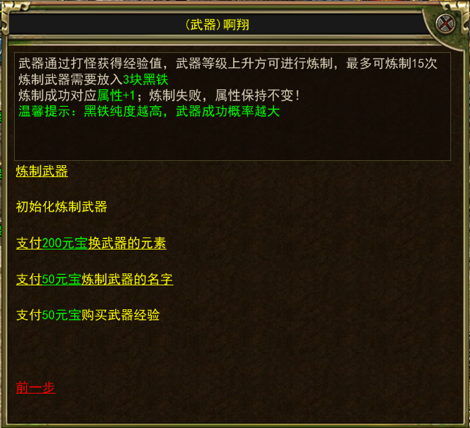 诸位勇士们好,本期攻略是介绍武器炼制系统。