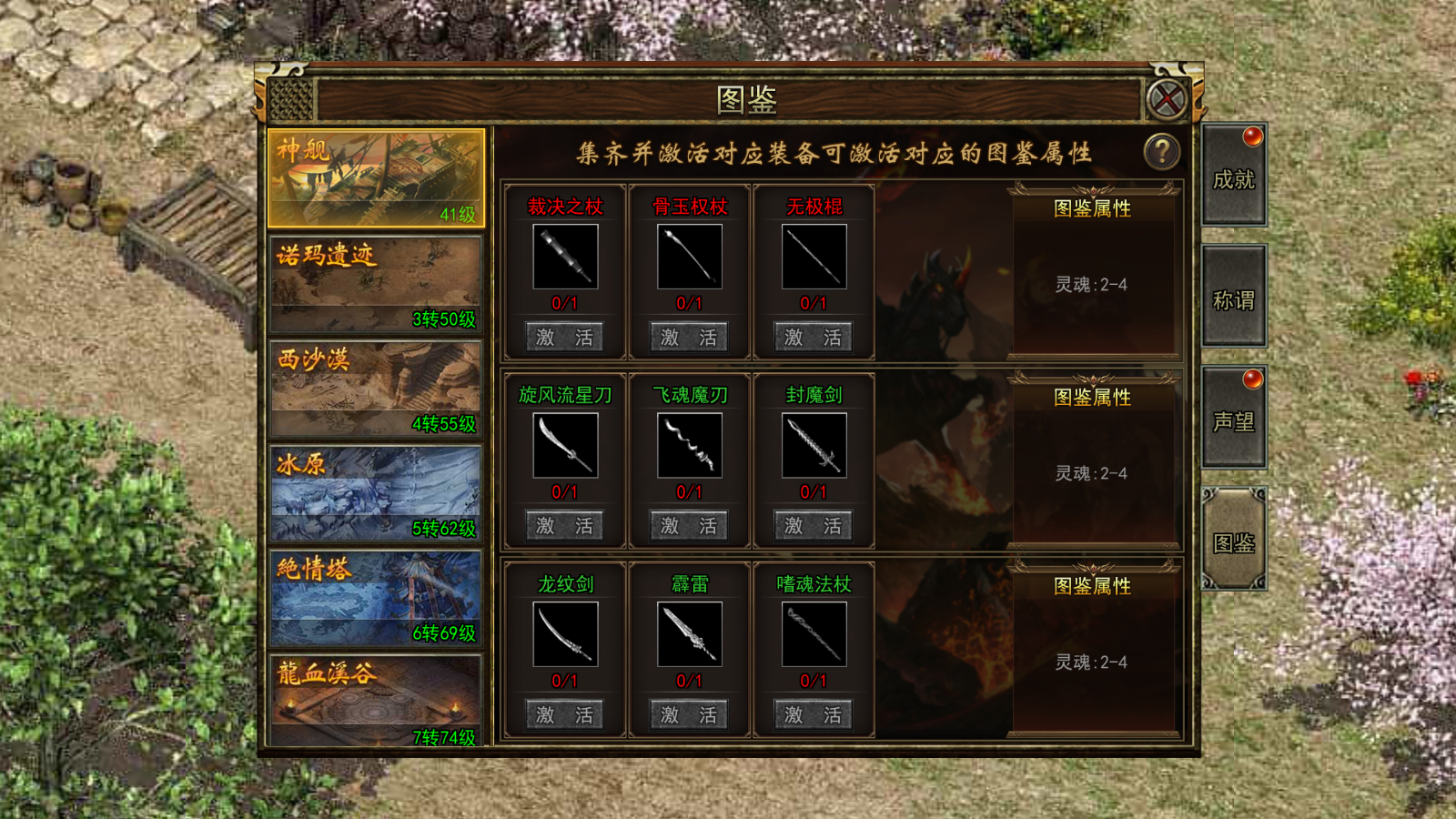 开服30天开放「图鉴系统」,可将多余的装备上缴点亮,达到指定的数量可获得属性。